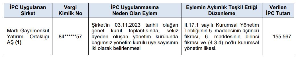 | Martı Gayrimenkul Yatırım Ortaklığı AŞ | Şeffaflık eksikliği | 500.000 |